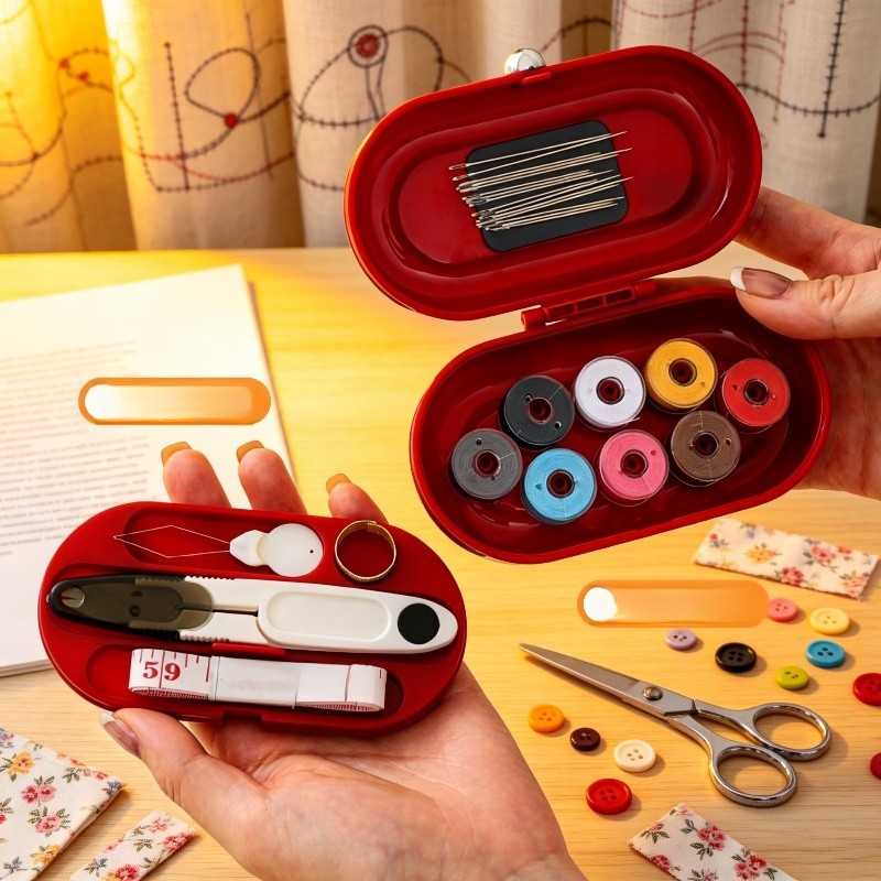 Compact and portable magnetic needle and thread box